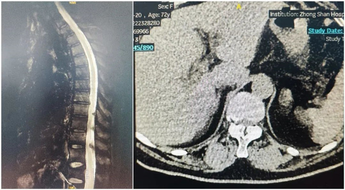 患者兩年前出現(xiàn)左側(cè)胸背部皮膚感覺麻木,有束帶感,左上臂皮膚感覺麻木,否認肌力減退,胸平掃椎CT示:胸椎序列正常,生理彎曲存在,椎體邊緣骨質(zhì)增生,椎間盤略退變,T7-T9黃韌帶增生并伴骨化,壓迫內(nèi)膜囊,椎管狹窄。影像診斷:黃韌帶骨化。