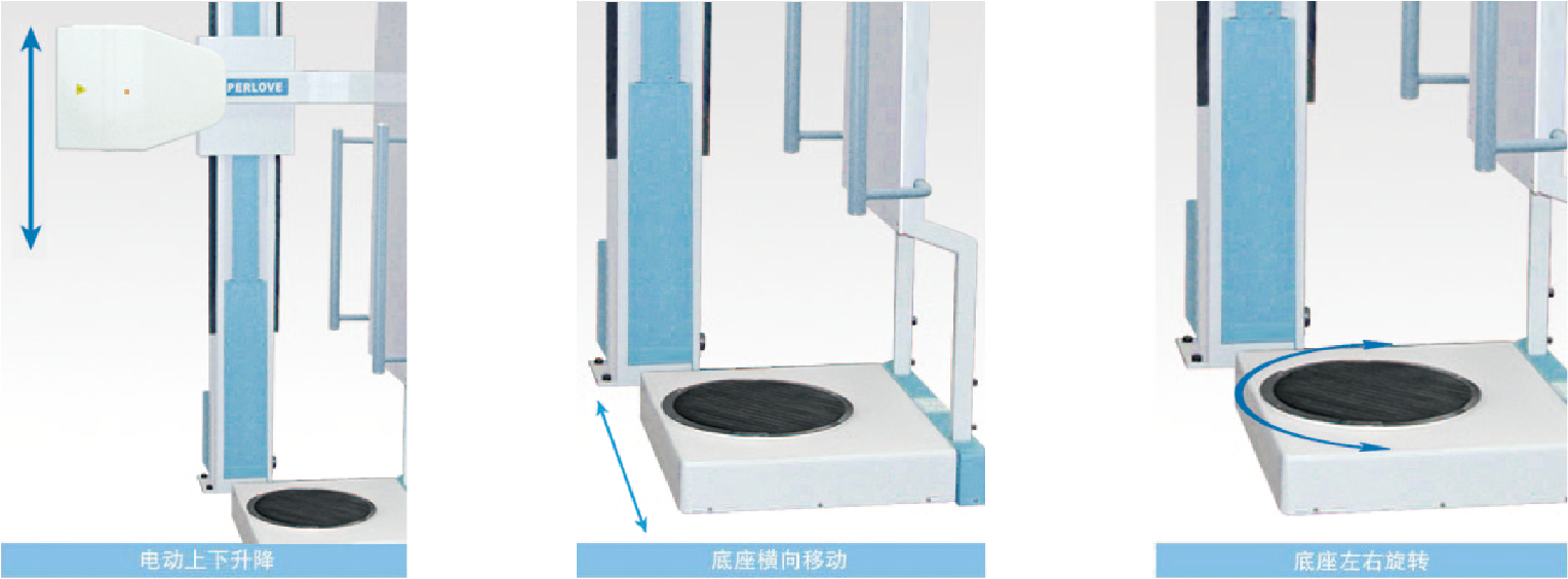 1、 電動上下升降、電動橫向移動、電動旋轉(zhuǎn)的功能,真正實現(xiàn)機動人不動的方式,使用方便、可靠。